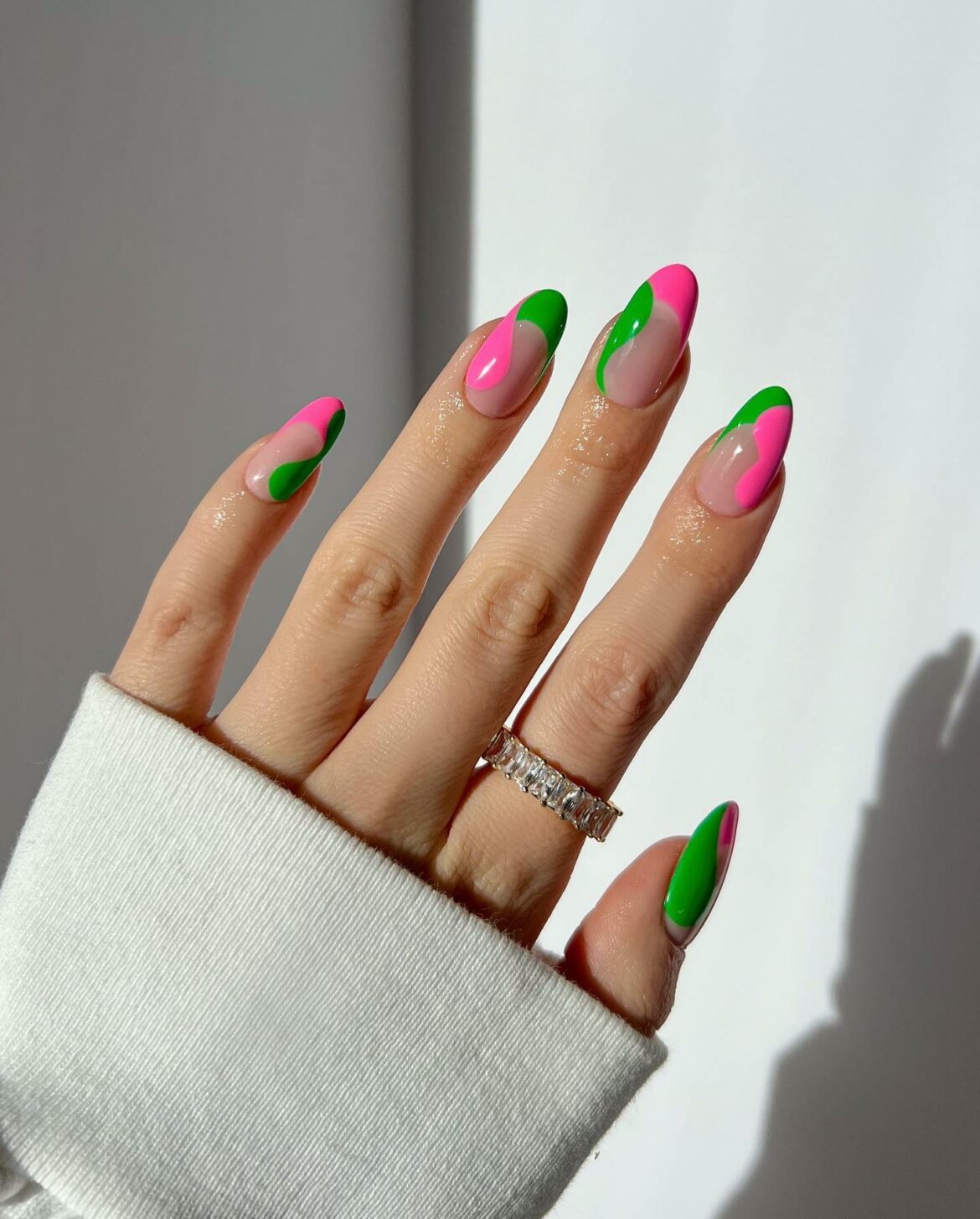 Pink & Green Tropical Nails: A Match Made in Heaven